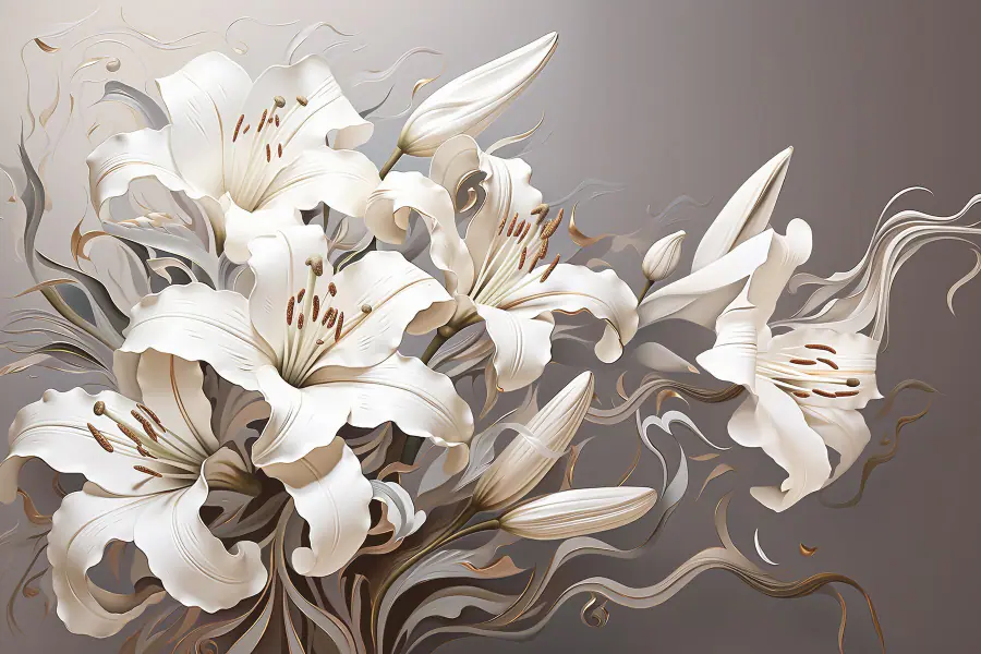 Fototapeta Bílé květy s hnědými a bílými víry