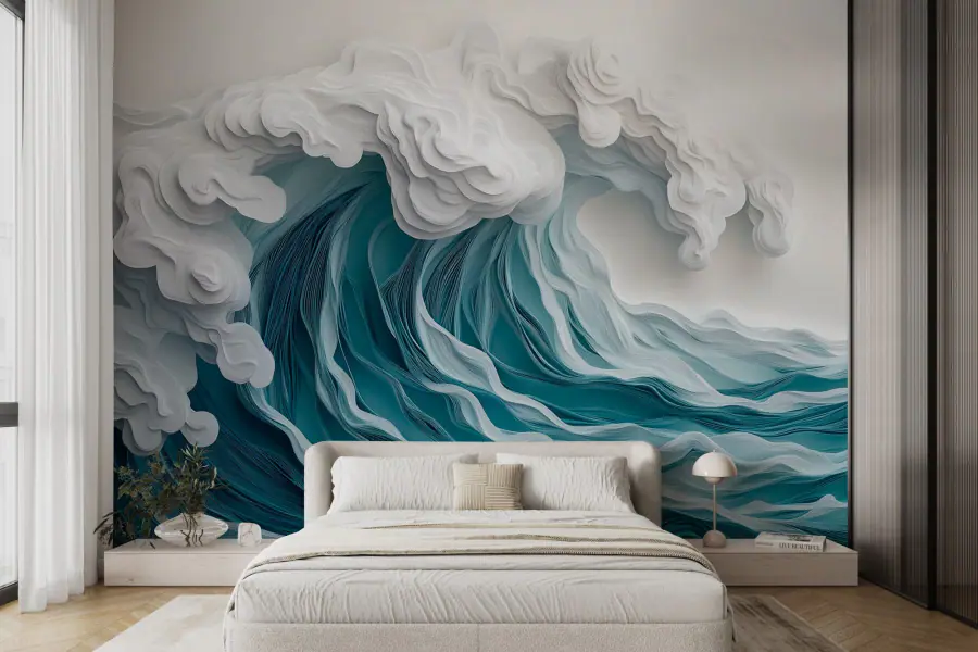 Proměňte stěnu v klidný únik z oceánu pomocí této úžasné nástěnné malby "Papír vystřižený z vlny". Představte si, že relaxujete ve svém obývacím pokoji a každý pohled na tuto zářivou vlnu přináší jemný vánek klidu. Složité vrstvy modré a bílé barvy napodobují vířící hlubiny oceánu a téměř vybízejí k ponoření. Tato nástěnná malba, která je ideální pro ty, kdo milují přírodu nebo potřebují malou připomínku plážových dnů, není jen dekorací - mává na pozdrav kreativitě. Je to jako mít doma malý kousek moře, bez písku na nepříjemných místech. Ať už se jedná o útulný koutek, nebo otevřený prostor, vyvolá radost a možná i trochu touhy!