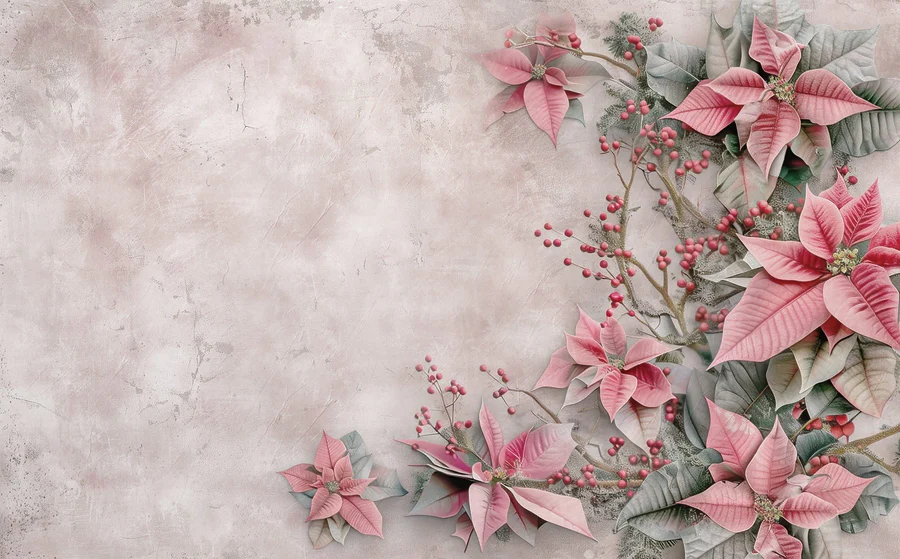 Fototapeta Růžové květy a bobule na bílém povrchu