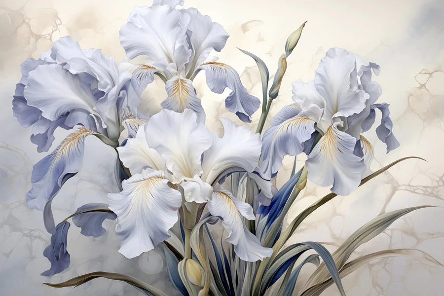 Proměňte jakýkoli prostor v klidné útočiště s nástěnnou malbou "Krásné květy v jemných barvách". Představte si, že vejdete do místnosti plné jemných kosatců, jejichž jemná modř a bílá šeptají klid. Tohle není jen nástěnné umění, je to závan čerstvého vzduchu. Představte si útulný čtecí koutek, kde se tyto uklidňující květiny stanou kulisou pro líná odpoledne s šálkem čaje. Je to jako přenést si kousek klidné zahrady do interiéru - není třeba zalévat! Navíc, kdo by nechtěl říct, že na jeho stěnách jsou květiny, které nikdy neuvadnou? Ideální pro milovníky přírody nebo pro každého, kdo potřebuje do života trochu zenu. Tato nástěnná malba není jen dekorace - je to nálada.