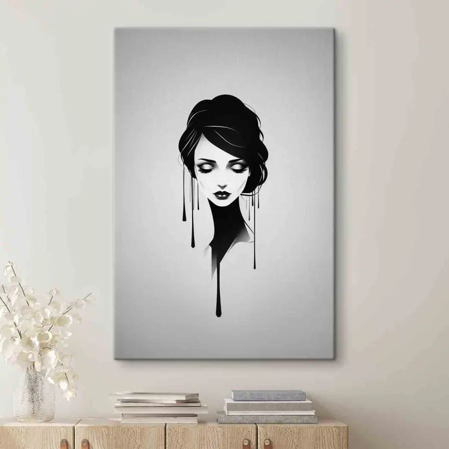 Představte si to: úžasný výtisk na plátně s ženou s bujnými černými vlasy a výrazným líčením, který zachycuje jednoduchost i dramatičnost. Má klasický černobílý půvab, díky němuž bude každá místnost okamžitě působit sofistikovaně - představte si Audrey Hepburnovou a moderní umění. Umístěte ji do obývacího pokoje nebo ložnice a sledujte, jak promění prostor. Možná se přistihnete, že nad jeho tajemstvím přemýšlíte u ranní kávy nebo po dlouhém dni. Není to jen obraz, je to atmosféra, šepot elegance, který vybízí ke zvědavosti.