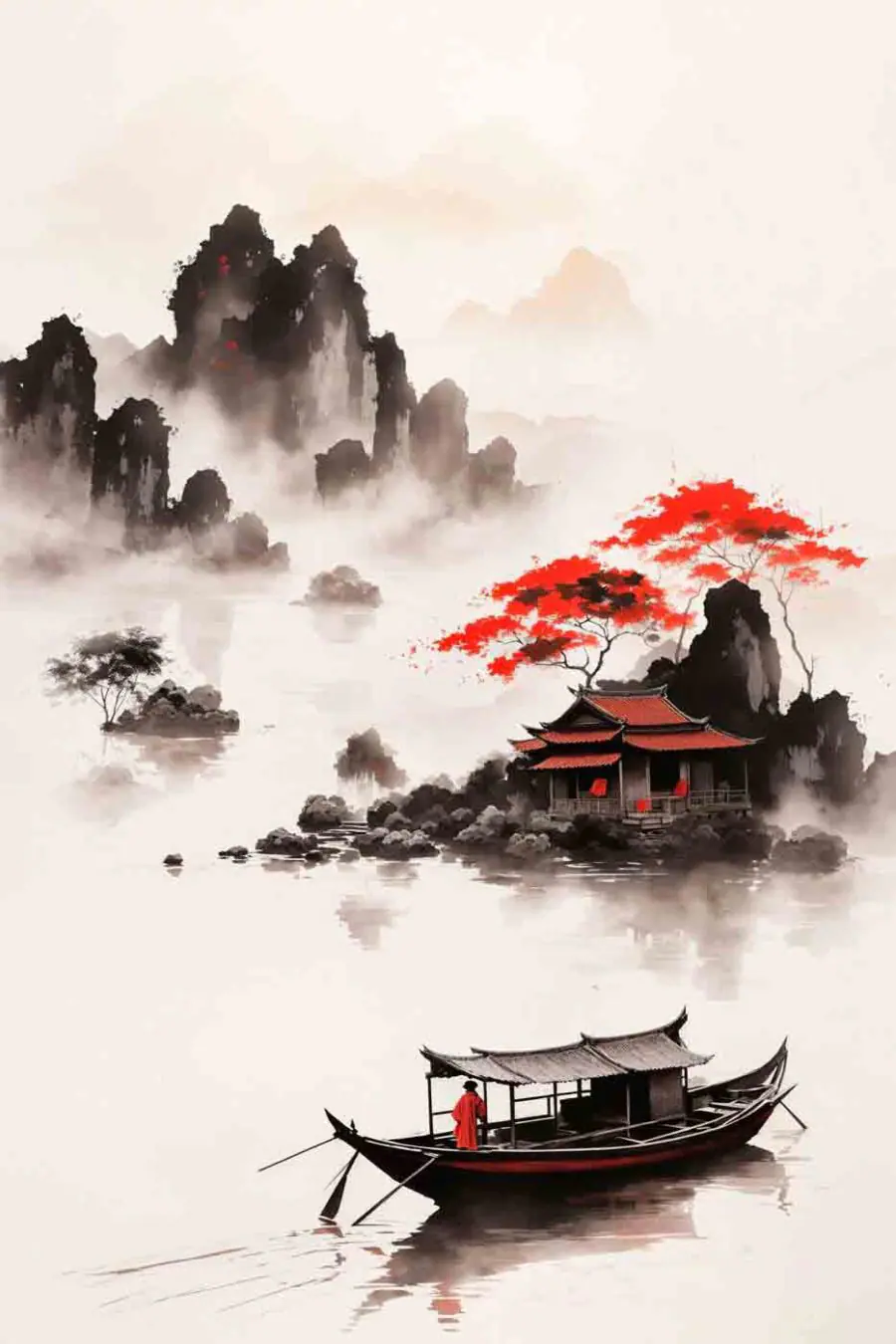 566.28 Kč340.01 KčObraz Akvarelová malba jezera s pagodou a lekníny
