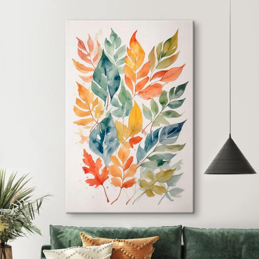 Proměňte jakoukoli stěnu v živou oslavu přírody s tímto plátnem s barevnými listy. Každý list jako by tančil v okouzlujících odstínech - hluboké zelené, ohnivé oranžové a slunečné žluté. Představte si, jak rozjasňuje útulný čtecí koutek nebo slouží jako každodenní připomínka krásy za oknem. Je to jako přenést si kousek prosluněného lesa do interiéru, bez otravných brouků! Tento kousek je ideální pro každého, kdo touží po barevném nádechu, a dodá každé místnosti svěží a živou atmosféru. Zapomeňte na nudné stěny, je čas nechat zazářit umělecké dílo přírody!