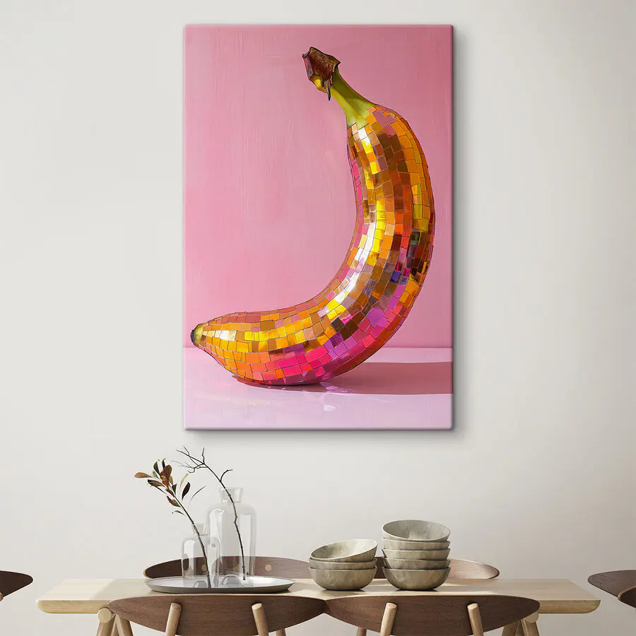 Obraz Barevný zrcadlový banán na růžovém pozadí