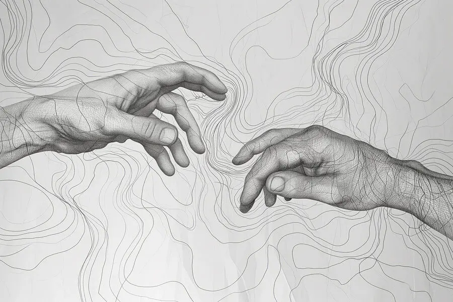 Obraz Kresba dotýkajících se rukou