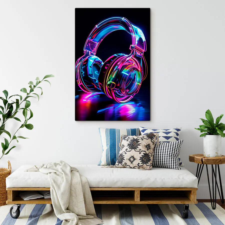 Představte si, že vejdete do místnosti, jejíž stěny pulzují energií - toto plátno má takovou atmosféru! Barevná sluchátka září, jako by byla připravena spustit rytmus, a rozhodně upoutají pozornost. Na tomto hladkém černém pozadí vyniknou jako bonbóny na narozeninovém dortu. Tento kousek není jen dekorací, ale i podnětem ke konverzaci, ideální pro milovníky hudby nebo kohokoli, kdo hledá ve svém prostoru špetku kreativity. Představte si útulný koutek s pohodlným křeslem, šálkem kávy a puštěnými melodiemi při pohledu na tato zářivá sluchátka. Jde o dobrou náladu a oživení prostoru.