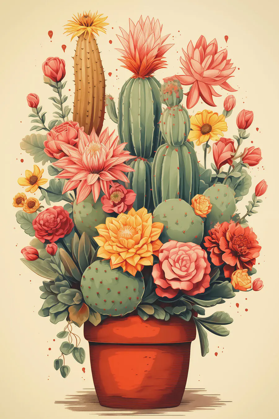 Obraz Kaktus a květiny v květináči