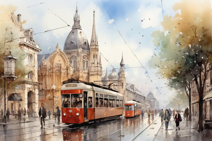 566.28 Kč340.01 KčObraz Akvarel kanálu s loděmi a budovami