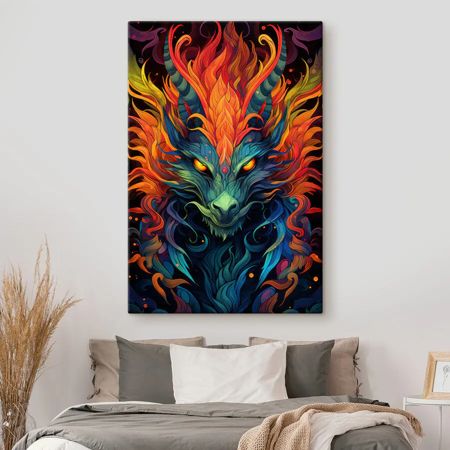 Proměňte jakýkoli prostor pomocí tohoto živého potisku na plátně s barevným drakem s rohy. Není to jen umění, je to i podnět ke konverzaci. Představte si, jak na vás toto majestátní stvoření zírá, je plné šmrncu a osobitosti a vnese na vaše stěny nádech rozmarnosti a zázraku. Vířící barvy tančí kolem a vyvolávají pocity dobrodružství a mýtických příběhů připravených k rozvinutí. Ať už se nachází v útulném obývacím pokoji, kreativním pracovním prostoru nebo hravém dětském pokoji, dodá mu kouzlo. Kdo by se nechtěl inspirovat drakem? Nechte tento kousek roznítit vaši fantazii!