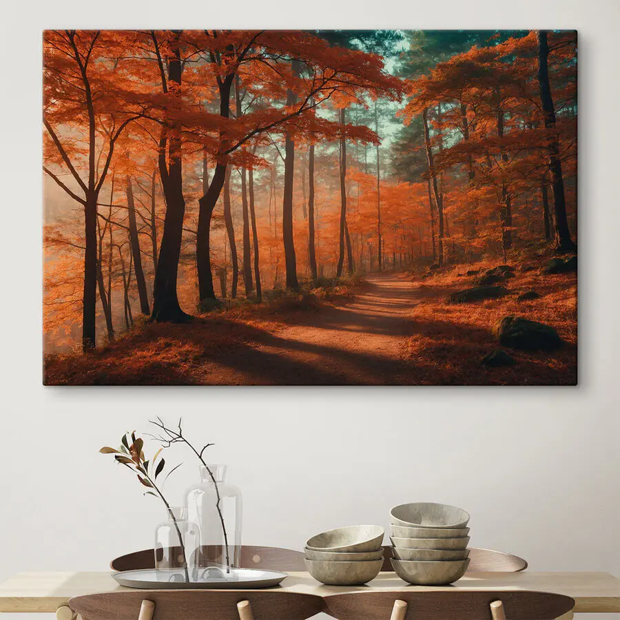 Představte si, že vstoupíte do klidného lesa, kde je svěží vzduch a listy září zářivou oranžovou barvou. Tento tisk na plátně zachycuje právě to - klikatou stezku obklopenou stromy zahalenými do podzimních barev, která vybízí k poklidné procházce, i když je to jen ve vaší fantazii. Je to jako mít kousek přírody přímo na stěně a vyvolat v sobě ty příjemné, hřejivé pocity. Toto umělecké dílo, které se skvěle hodí do obývacího pokoje nebo do klidného čtecího koutku, šeptá hostům přátelské "pojďte dál". V kombinaci s pohodlným křeslem a dobrou knihou možná zapomenete na svět venku! Co říkáte na takovou malou domácí dovolenou?