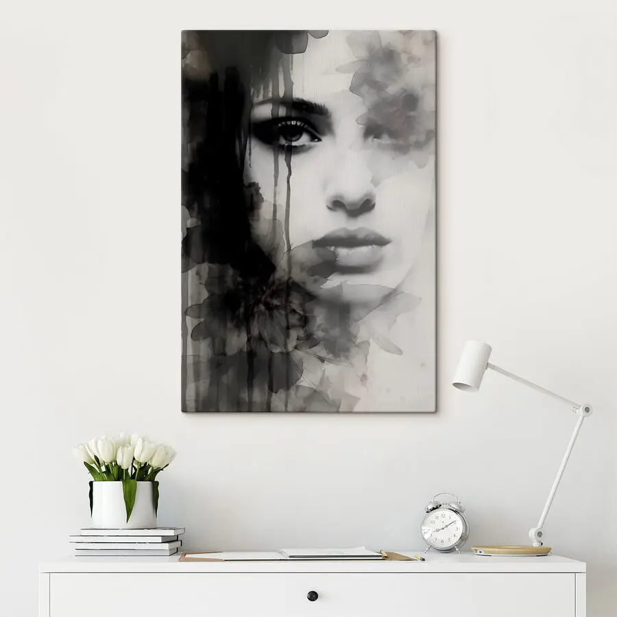 Představte si to na své zdi: jako by umění právě vdechlo život vašemu prostoru. Toto plátno "Tvář ženy s květinami" se pohybuje na pomezí elegance a tajemství - ideální pro vzbuzení trochy intrik. Černobílé tóny? Ano! Jsou klasické, takže se hodí kamkoli, od útulného zákoutí po elegantní kancelář. Na tom, jak se její oči setkávají s vašima, orámované těmi rozmarnými květinami, je něco poetického. Jako by znala všechna vaše tajemství a nechtěla prozradit ani slovo. Jste připraveni dodat jí dramatičnost a šarm? Tady máš!