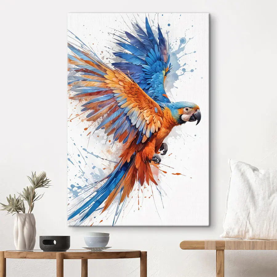 Obraz Barevný pták létající se stříkající barvou