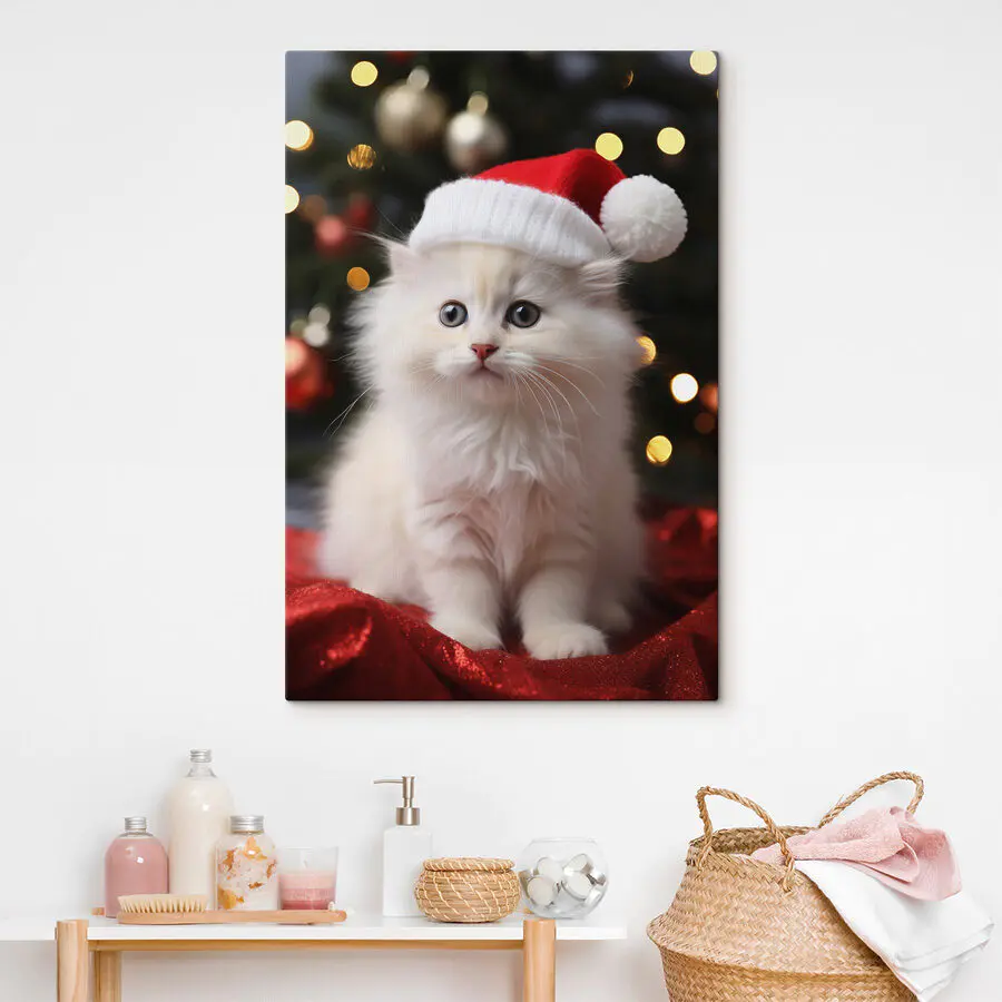 Obraz Bílé kotě v santovské čepici