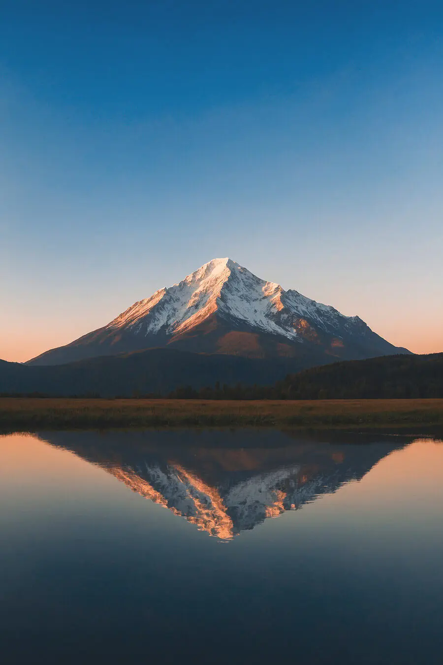Obraz Hora s jezerem a trávou