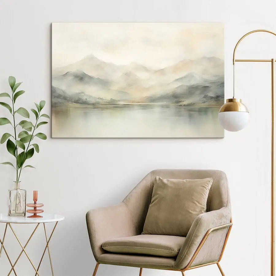 566.28 Kč340.01 KčObraz Akvarelová malba jezera obklopeného horami a mraky