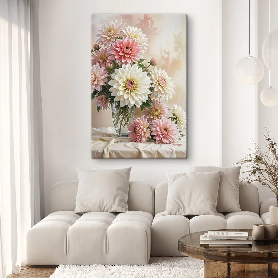 Proměňte fádní stěnu v kvetoucí ráj s obrazem "Váza s květinami na plátně". Tento ohromující kousek překypuje živými květy a zachycuje atmosféru čerstvých květů ze zahrady bez otravného pylu. Představte si, že přijdete domů po dlouhém dni, nalijete si šálek čaje a necháte ty krásné okvětní lístky rozzářit váš prostor. Je to jako mít veselého zahradního přítele, který nikdy neuvadne! Toto umělecké dílo, které se skvěle hodí do útulného zákoutí nebo do živého obývacího pokoje, vybízí k vřelosti a kouzlu, takže se každý bude cítit vítán jako v nečekaném objetí. Navíc je nenáročná na údržbu - není třeba ji zalévat!