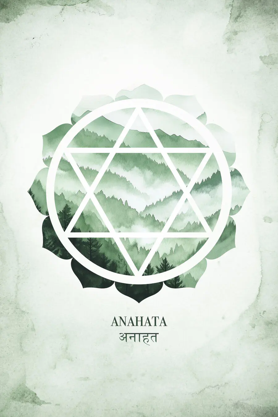 Obraz Zelený a bílý symbol s horami v pozadí