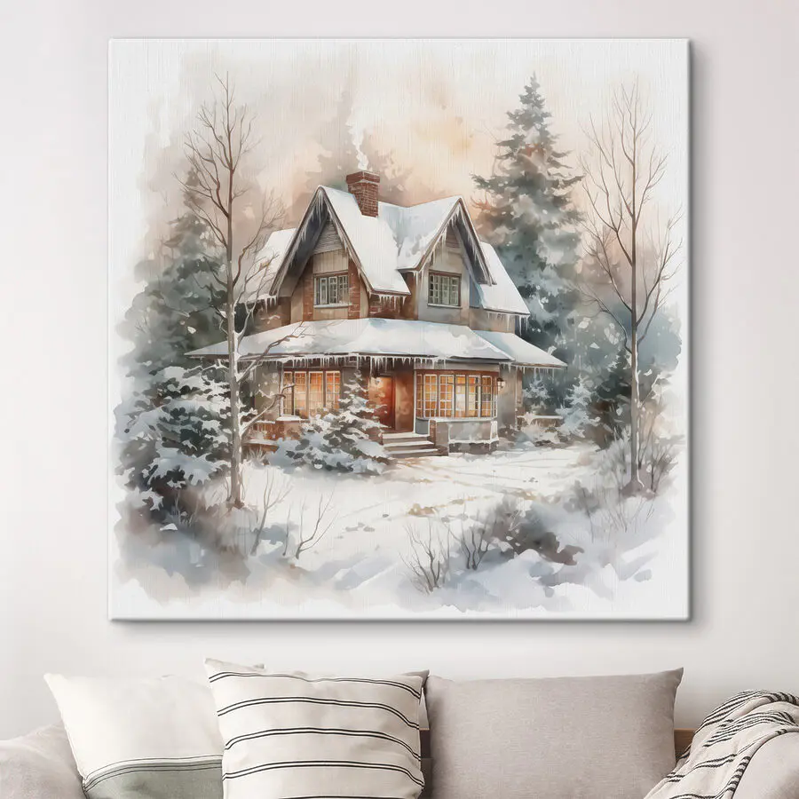 Proměňte každou stěnu v útulné útočiště s tímto okouzlujícím potiskem na plátně "Dům na sněhu". Představte si jemné křupání sněhu pod botami, když se procházíte kolem půvabné chaty a z komína se valí kouř. Toto umělecké dílo vnese tuto idylickou atmosféru zimní říše divů přímo do vašeho obytného prostoru. Jemné barvy a klidný výjev vybízejí k hřejivým vzpomínkám na horké kakao u krbu. Je ideální pro ozvláštnění chladného koutu nebo jen pro to, abyste se uvnitř cítili útulně, je to jako mít na stěně kousek zasněženého kouzla - bez nutnosti lopaty!