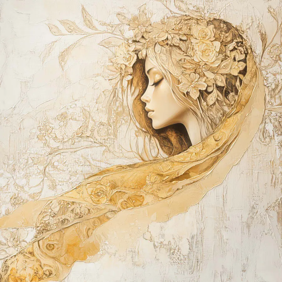 Představujeme vám tisk na plátno, který je jako hřejivé objetí pro vaše stěny - úžasný obraz ženy s květinami ve vlasech. Představte si, že přijdete po dlouhém dni domů a tam stojí ona, vyzařující klid a milost. Měkké zemité tóny působí přívětivě a každý prostor díky nim bude o něco živější. Skoro jako by vás zvala k malému snění a šeptala vám příběhy o rozkvetlých zahradách a slunečných odpoledních. Skvěle se hodí k oživení útulného zákoutí nebo k rozproudění konverzace u kávy. Věřte mi, že tento kousek dokáže proměnit každý nudný kout v malou oázu krásy. Vaše stěny vám poděkují!