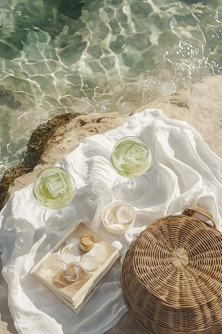 566.28 Kč340.01 KčObraz Akvarelová malba dvou sklenic ledového čaje a knihy na dece na pláži