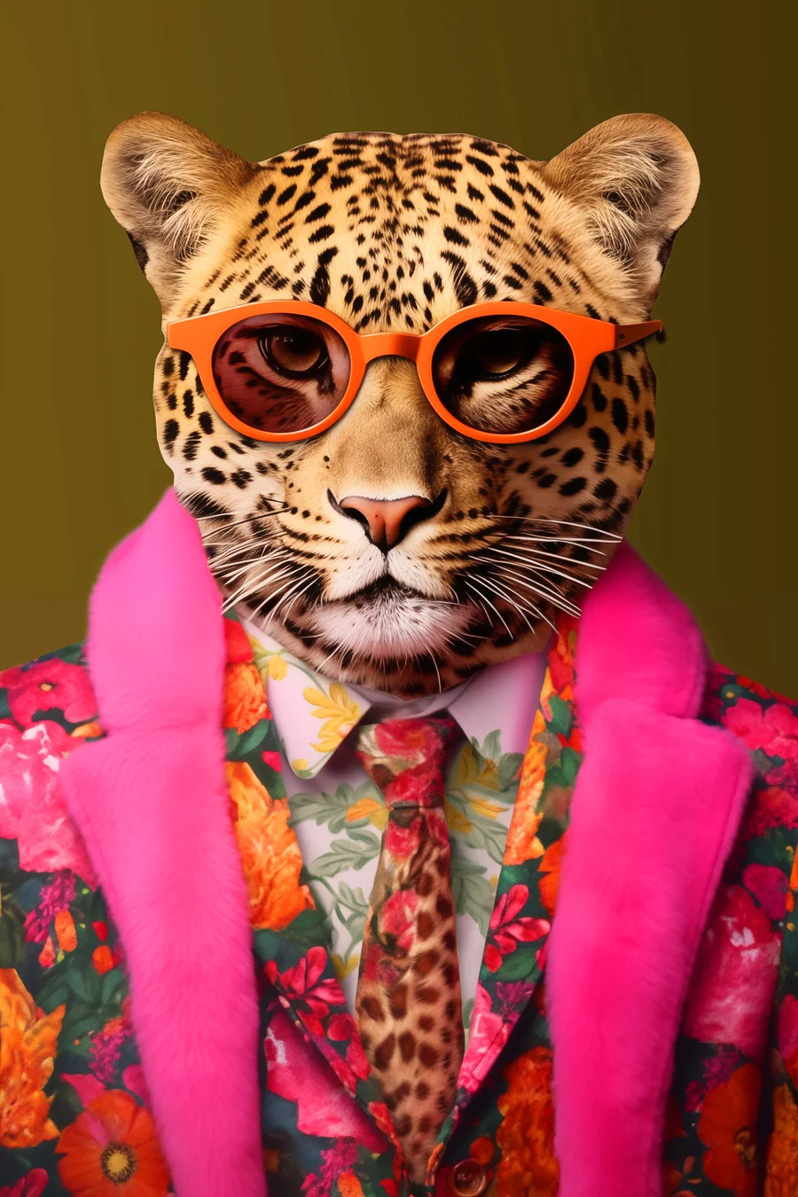 Představte si, že vejdete do místnosti a tam stojí leopard v obleku, jako by byl připraven na večerní akci. Tento potisk na plátně není jen dekorací, ale i podnětem ke konverzaci. Zářivé barvy a odvážný styl vnesou do každého prostoru nečekaný nádech a dodají mu pocit svěžesti a života. Hosté se budou smát, až budou přemýšlet, zda tento švihácký kocour může pořádat večírek, nebo jen stylově lenošit. Perfektně se hodí do domácí kanceláře, obývacího pokoje nebo třeba do funky kavárny a dodá jí osobitost způsobem, který je hravý i elegantní. Kdo by řekl, že divoká kočka může vypadat za stolem tak dobře?