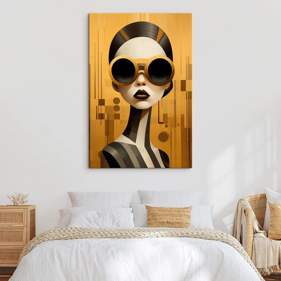 Proměňte jakýkoli prostor s tímto výrazným potiskem na plátně, na kterém je žena v nadměrných brýlích. Ideální pro dodání špetky rozmarnosti a podnětných myšlenek na vaše stěny! Výrazné barvy a abstraktní tvary vytvářejí atmosféru, která podněcuje konverzaci - představte si, že visí v útulném koutku nebo moderní kanceláři. Je jako okno do světa, kde vládne kreativita, a téměř si žádá druhý pohled. Tento kousek jen tak nesedí, ale vybízí ke zvědavosti. Je ideální pro ty, kteří touží po něčem trochu jiném, je to umění, které promlouvá, aniž by proneslo jediné slovo.