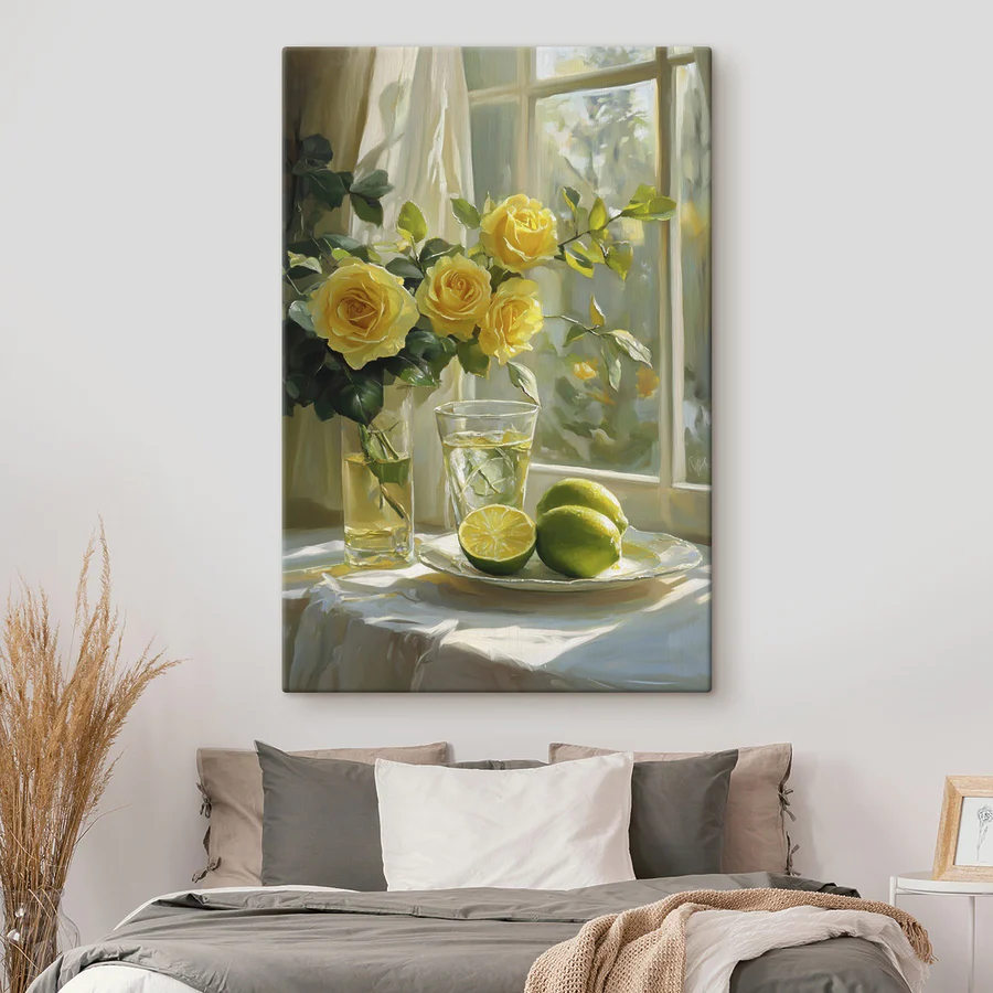 Obraz Žluté růže a citrony na talíři