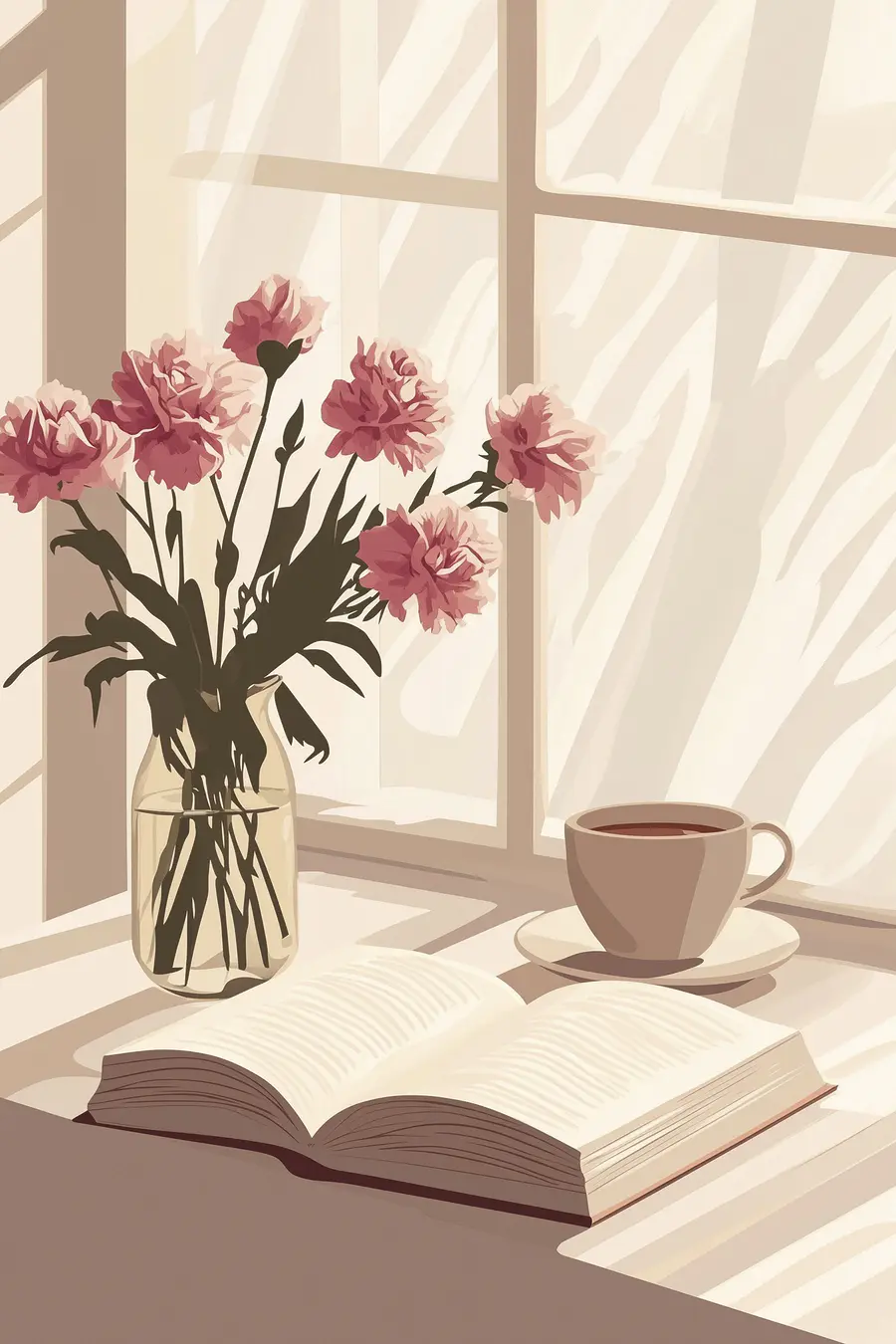 Proměňte nudnou stěnu v útulné zákoutí pomocí tohoto okouzlujícího potisku na plátně. Představte si líné odpoledne - sluneční světlo pronikající oknem, dobrá kniha rozprostřená na stole a váza s jemnými růžovými květy, které dodávají barvu. Jde přece o ty malé okamžiky, ne? Toto umělecké dílo šeptá "domov" jazykem, který je minimalistický a zároveň lákavý. Skvěle se hodí do obývacího pokoje nebo do útulného čtecího koutku a vybízí ke snění a hřejivým rozhovorům u čaje. Není to jen dekorace, je to atmosféra. Kdo by nechtěl kousek, který působí jako objetí v deštivém dni?