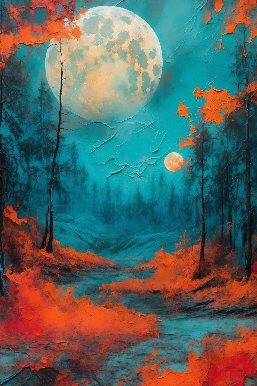 Obraz Obraz lesa s oranžovými listy a měsícem v úplňku